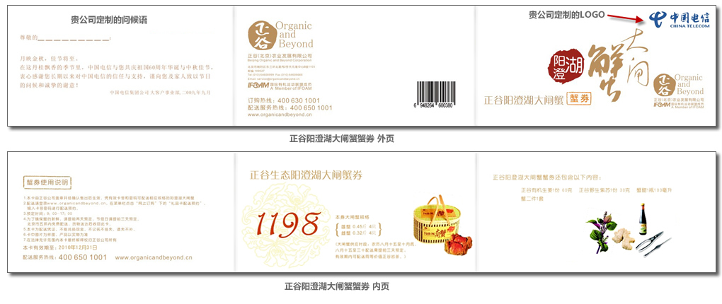 定制蟹券可添加企业名称、LOGO、问候语,100%满意保证,定制蟹券样图: